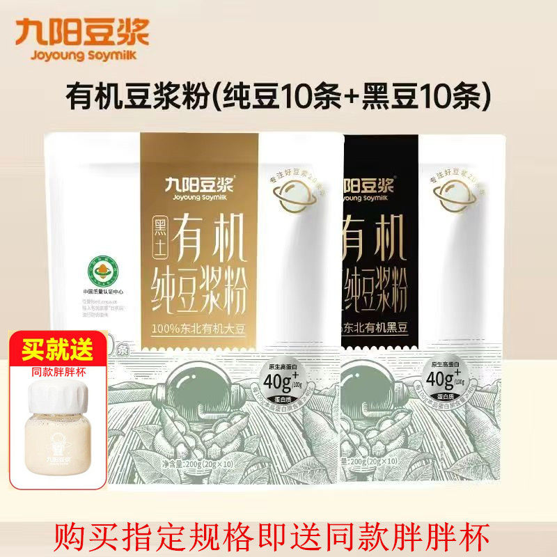 九阳豆浆有机黑豆大豆纯豆浆粉高蛋白速溶冲饮早餐200g袋装含10条