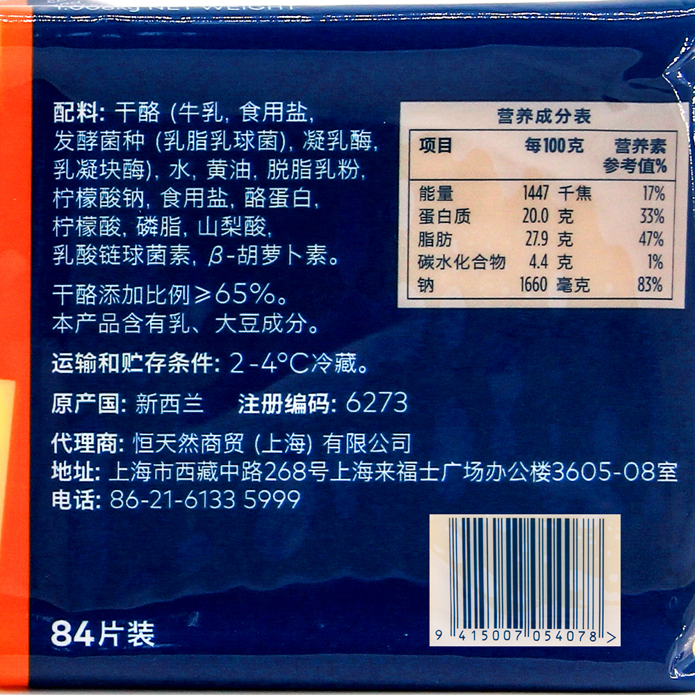 推荐理由:安佳芝士片84片原装进口再制车达干酪片商用切达奶酪片1008g