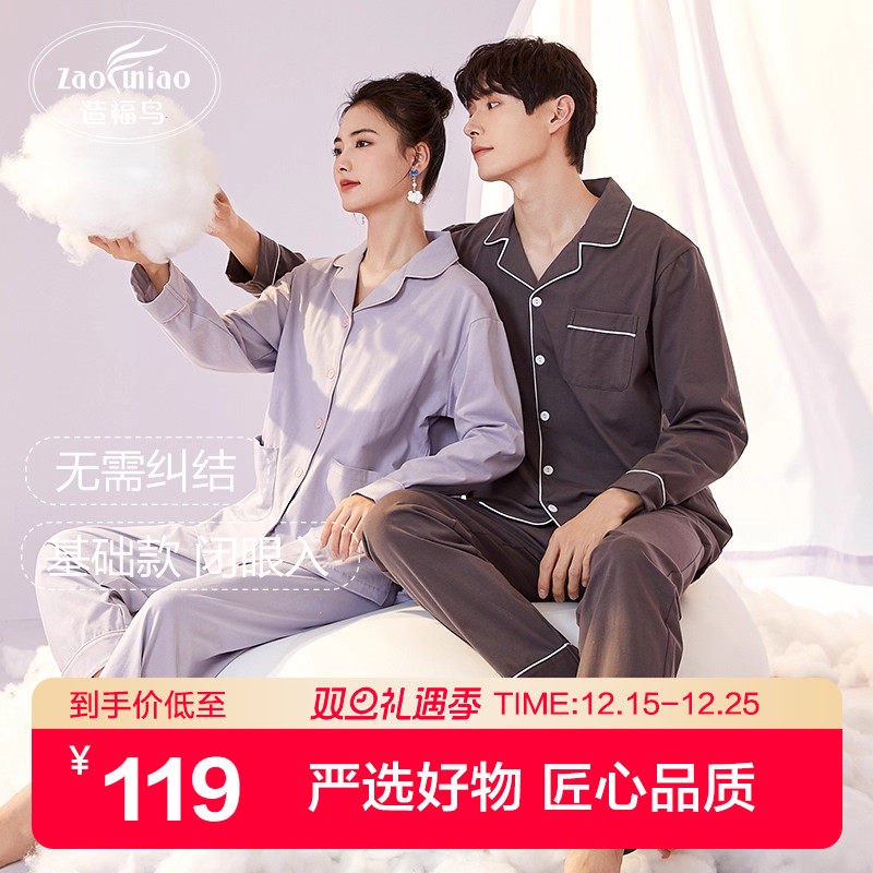 推荐理由:【所有女生的衣橱直播间】造福鸟情侣睡衣春秋新款长袖纯色家居服