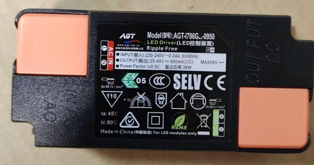 全新安规LED驱动电源,型号AGT-1786G-0950 输出25-40V,功率38W