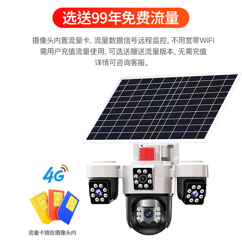 太阳能摄像头免充值室外360度无死角无网手机远程高清监控摄影AOV