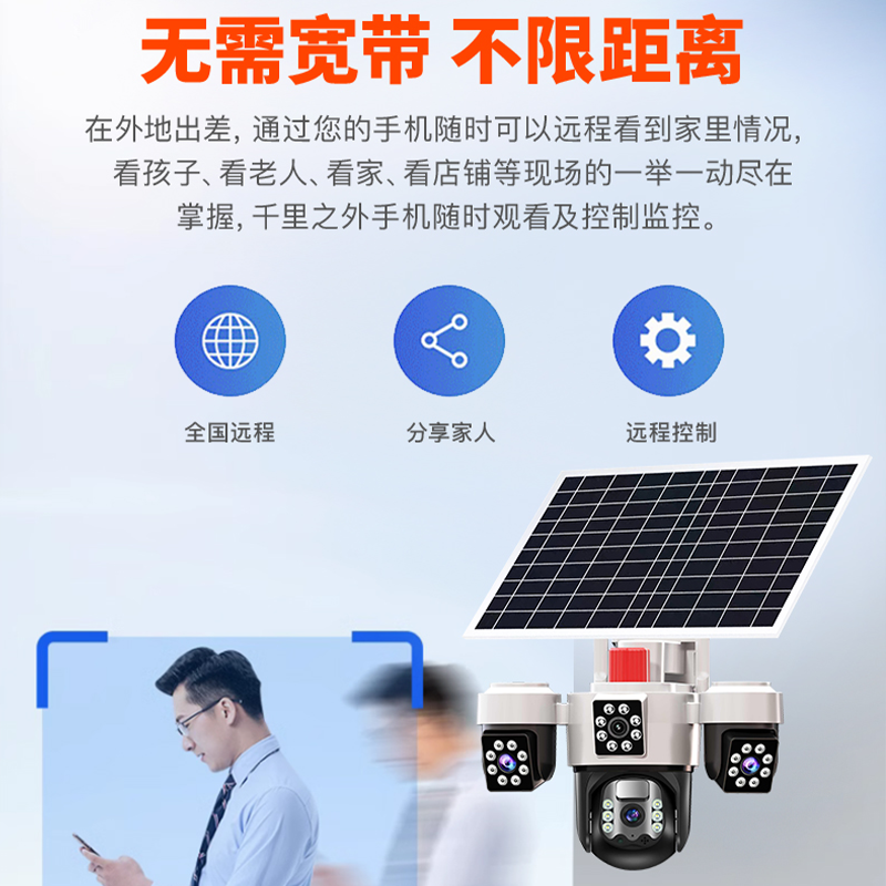 推荐理由:太阳能摄像头免充值室外360度无死角无网手机远程高清监控摄影AOV
