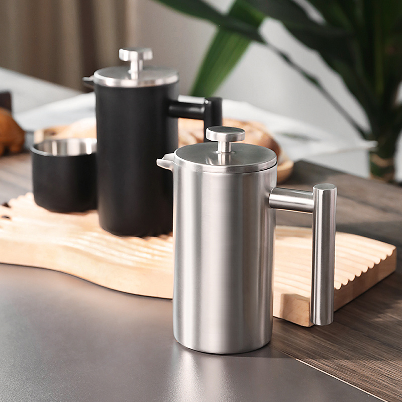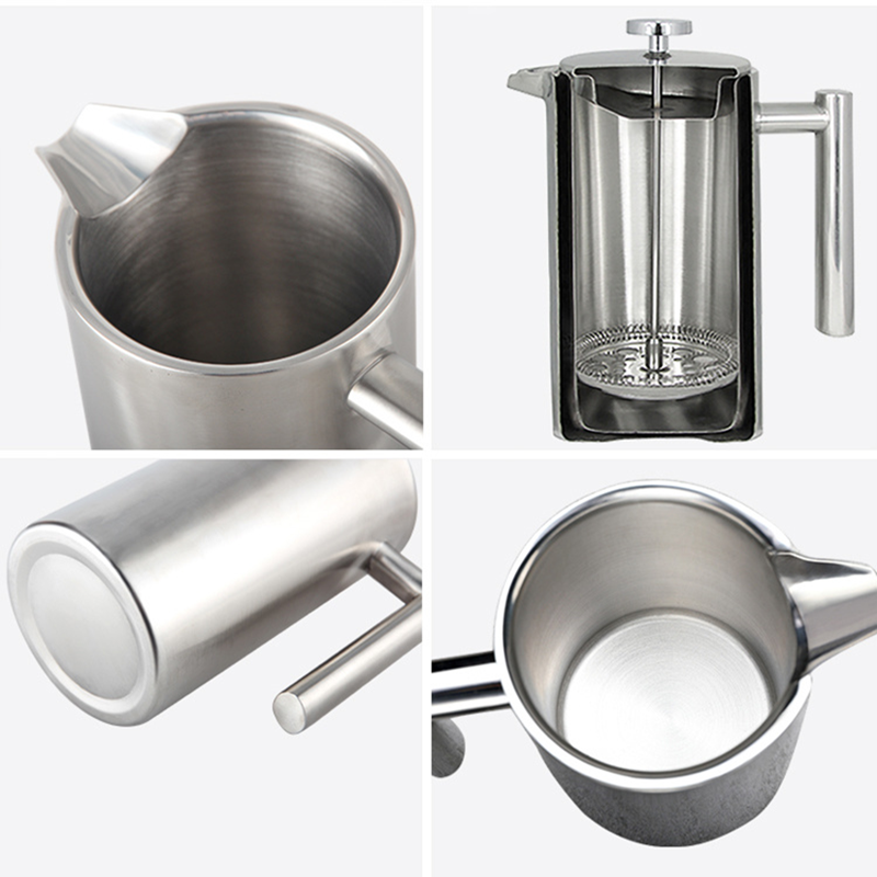 大厂1L大容量双层不锈钢法压壶 双重过滤保温壶茶壶易清洗有份量