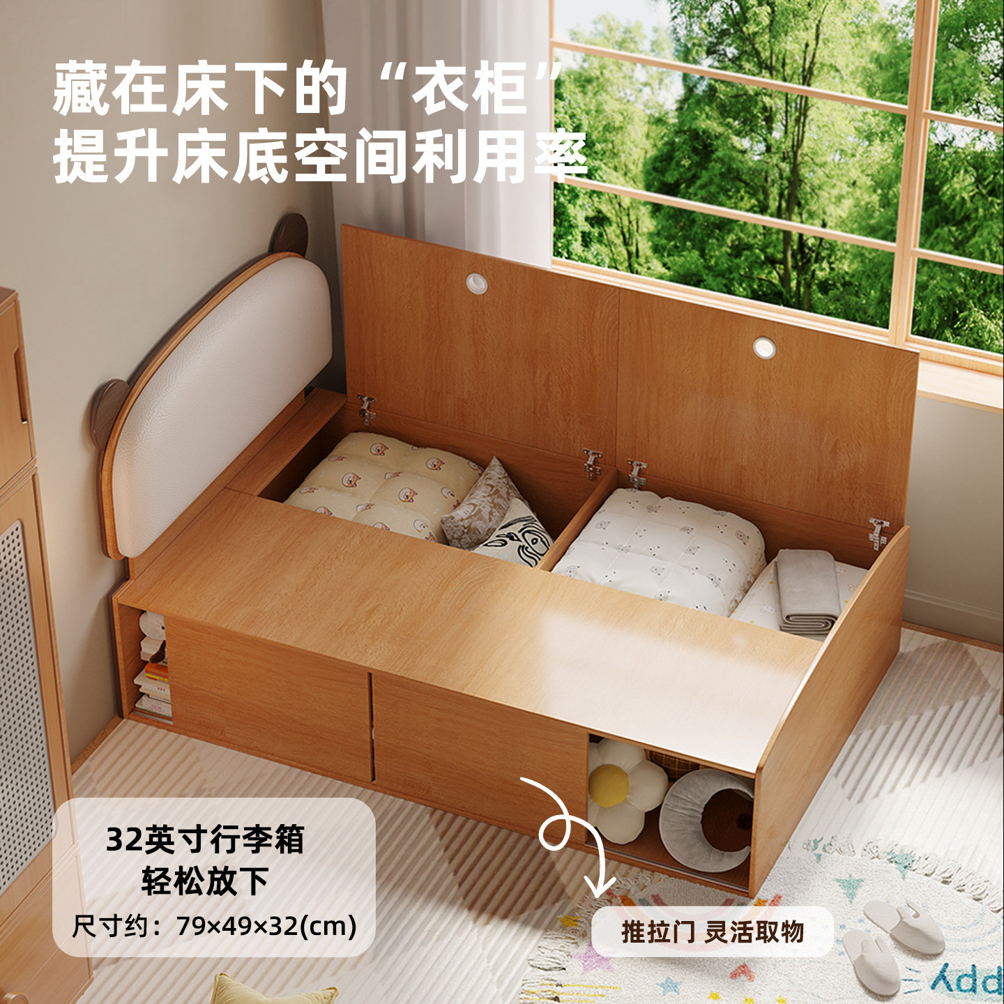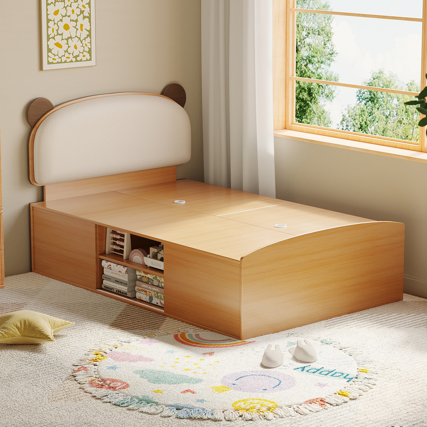 儿童半高床原木风男孩女孩学生多功能单人床小户型卧室加高储物床