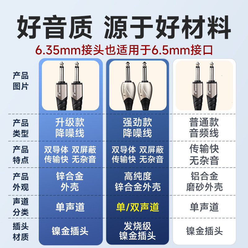 电吉他连接线贝斯电吹管乐器专用单块效果器吉他音响音频线降噪线