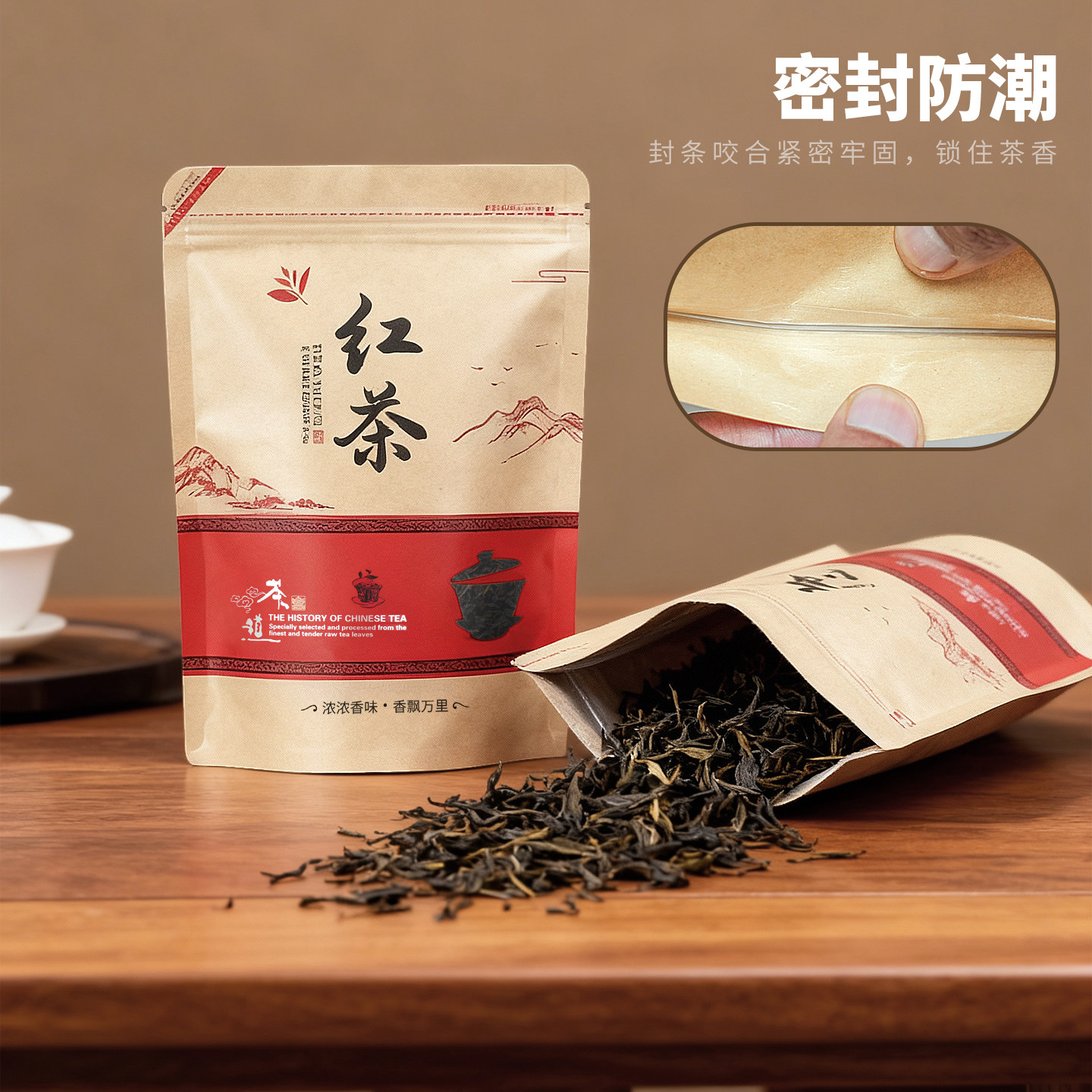 加厚牛皮纸半斤装红茶叶包装袋子金骏眉正山小种自封口拉链密封袋