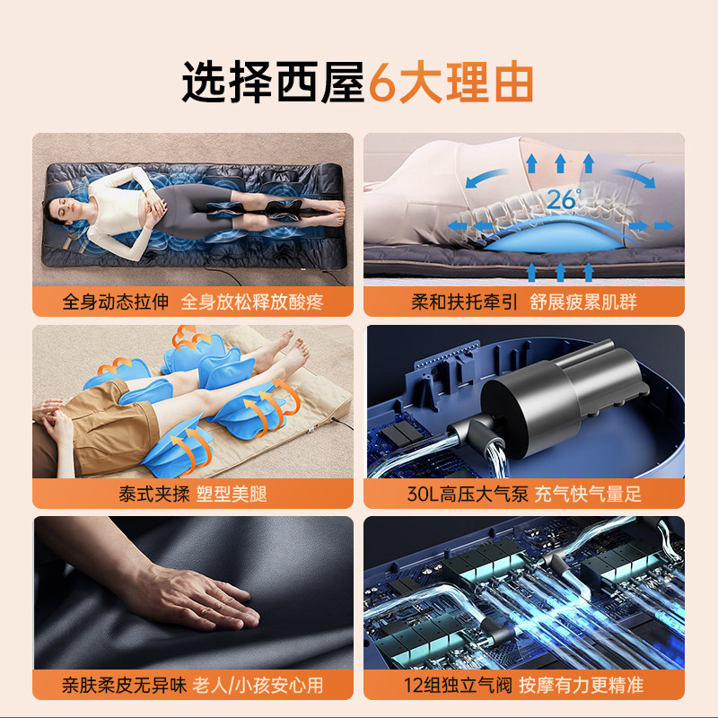 推荐理由:美国西屋S206按摩垫家用全身揉捏顶腰拉伸按摩椅器可折叠床垫S200