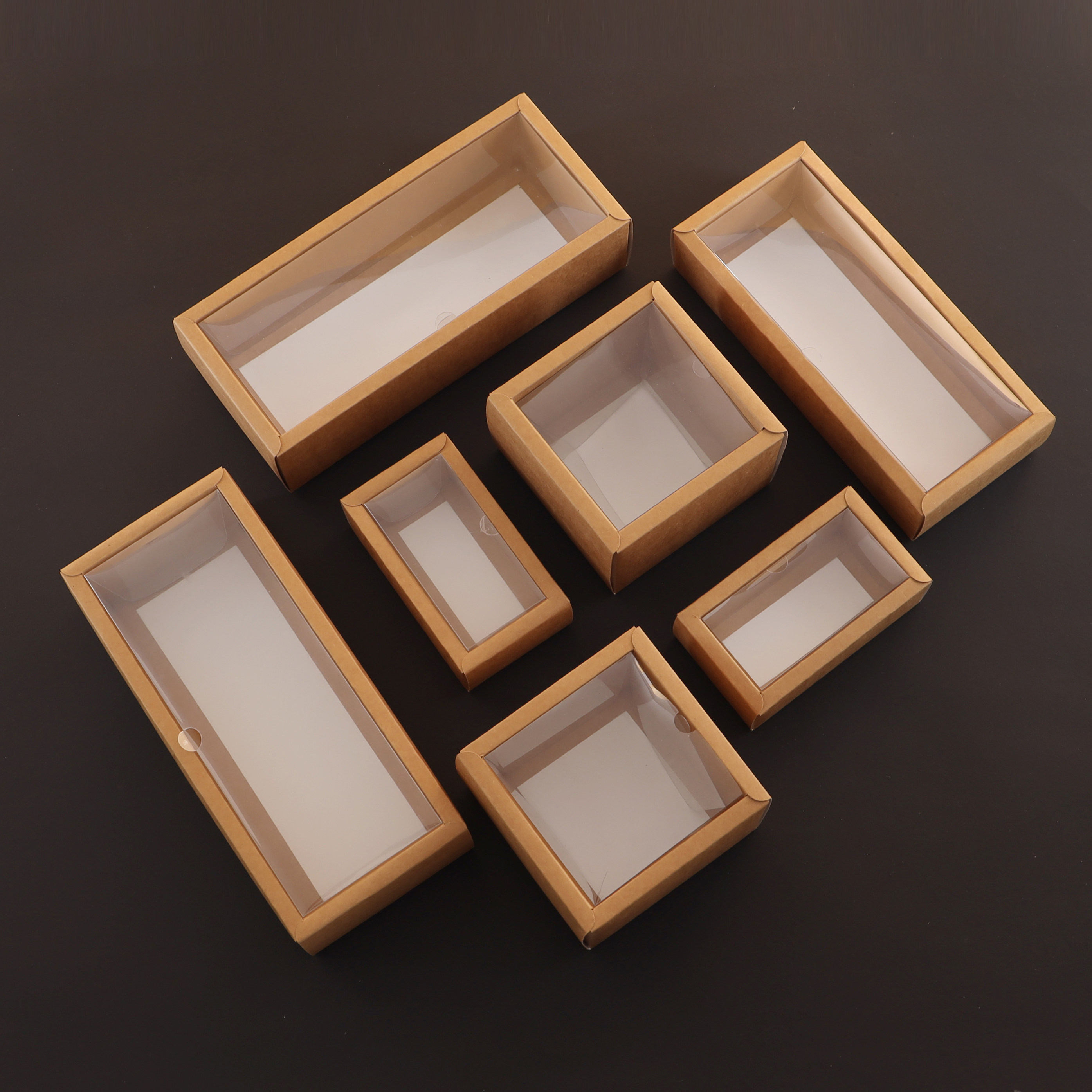 推荐理由:折叠现货牛皮纸PVC透明开窗天地盖包装盒长方形伴手礼品盒子制定