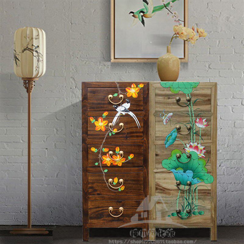 新中式彩绘香樟木五斗柜实木仿古收纳柜客厅抽屉斗柜卧室储物柜子