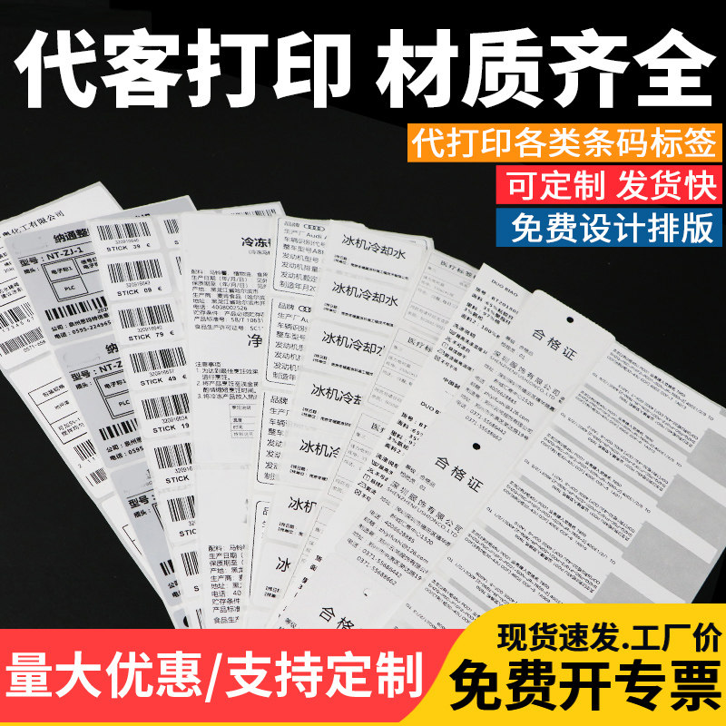 推荐理由:代打印条码不干胶标签定制定做印刷亚银固定资产洗唛吊牌合格证纸