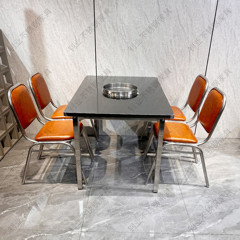 不锈钢烤肉火锅桌方形电磁炉电陶炉适用餐厅商用定制餐桌工业风桌