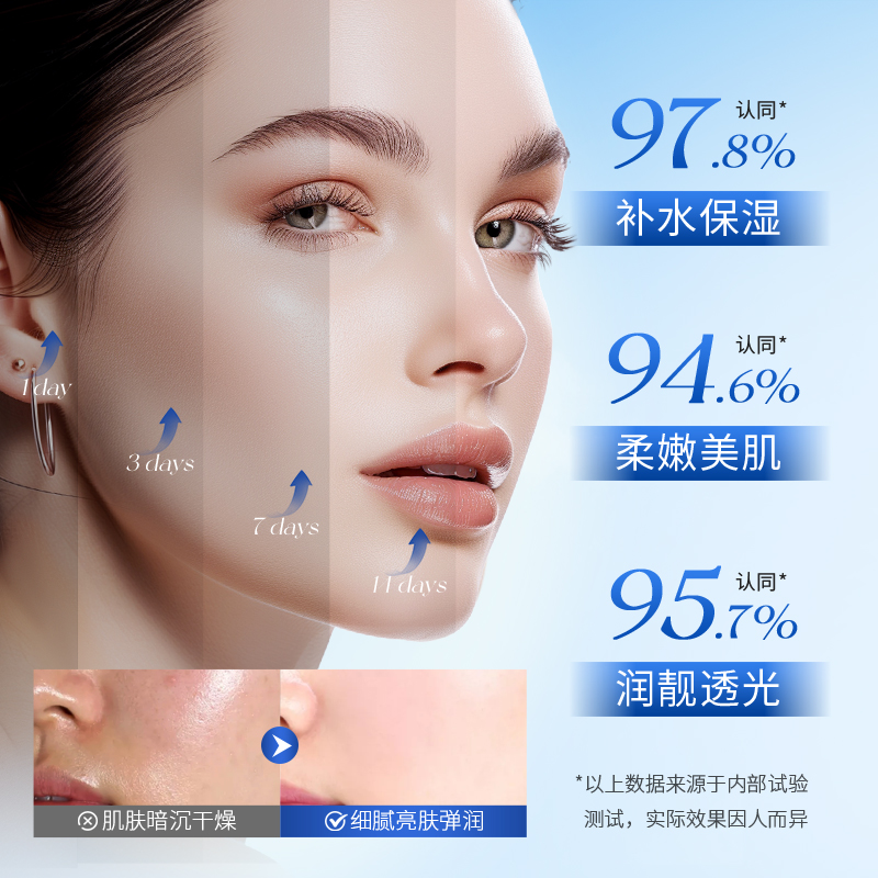 质地清透如水,上脸秒吸收不粘腻,补水同时牢牢锁水,让肌肤长效水润饱满。早晚轻拍上脸,搭配按摩促进吸收,坚持使用可淡化痘印、匀净肤色,打造自带光泽的健康裸肌。