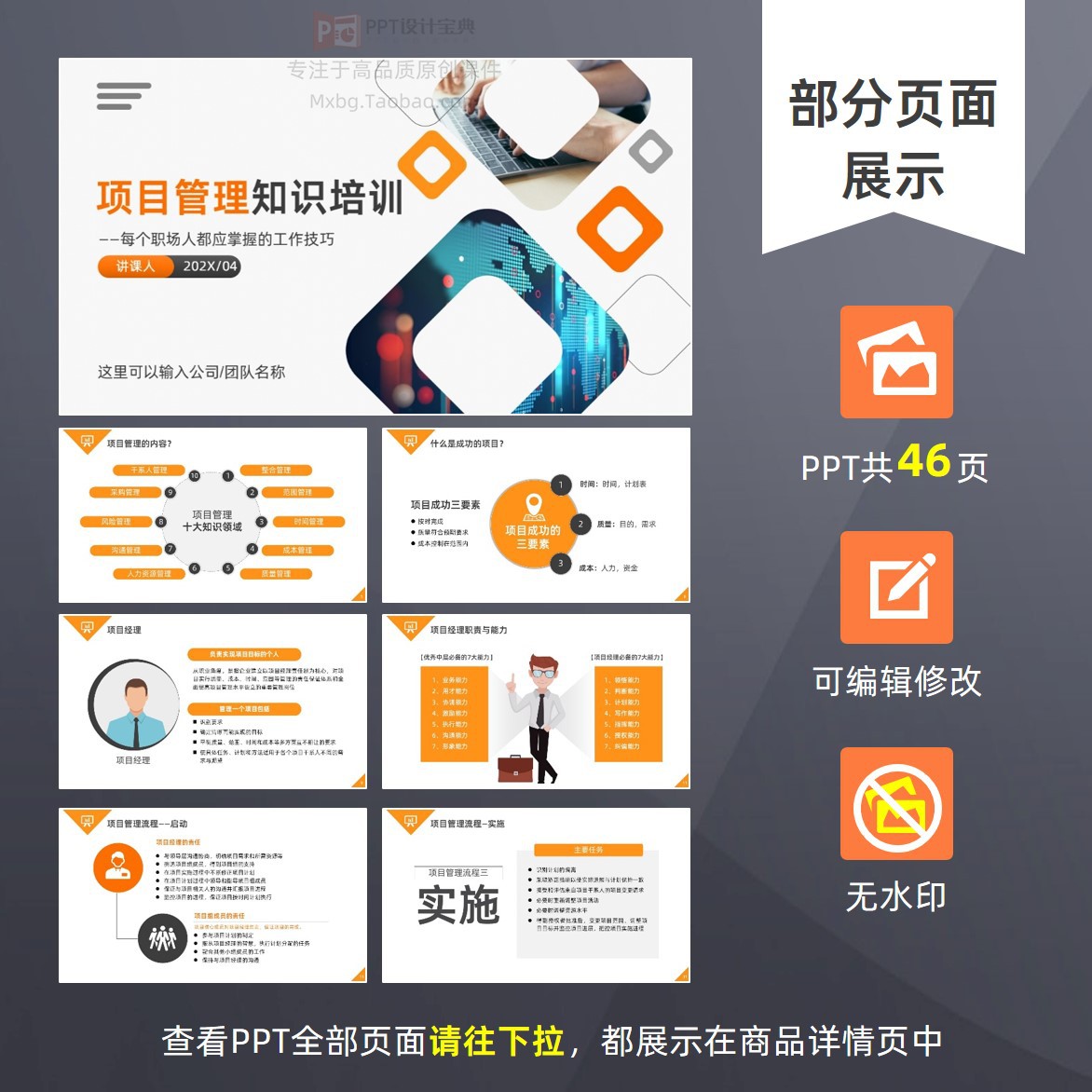 推荐理由:项目管理培训PPT PMP职场管理技能PMBOK五大过程培训PPT课件