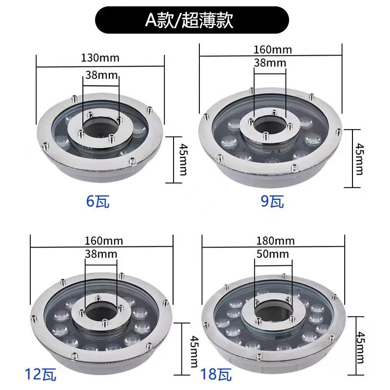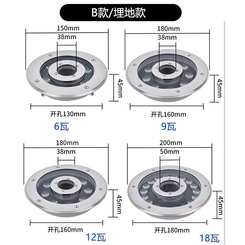 led水底灯七彩水下喷泉灯涌泉灯24V中孔灯水池灯防嵌入式鱼池水景