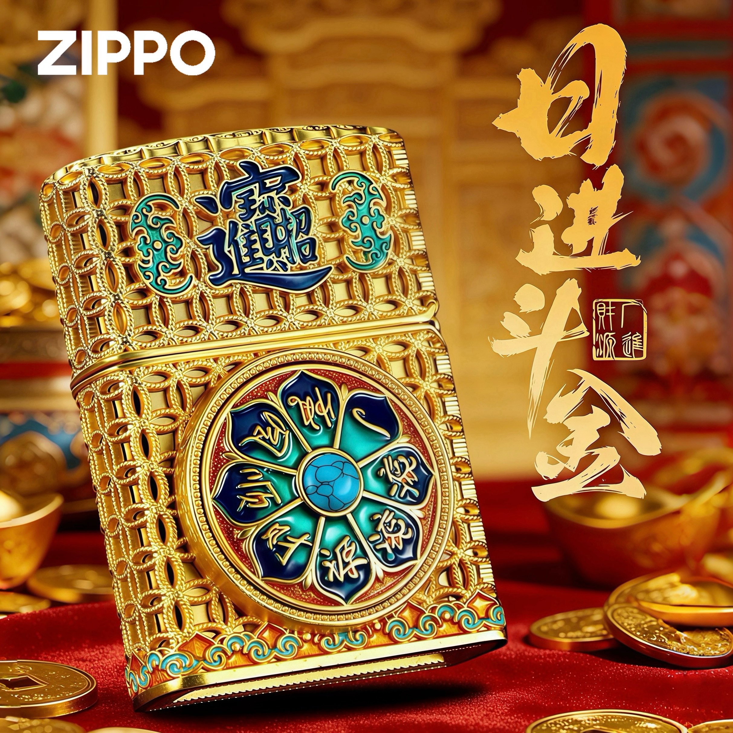 zippo打火机正品 珐琅彩八方来财算盘煤油防风正版送男友高档礼物