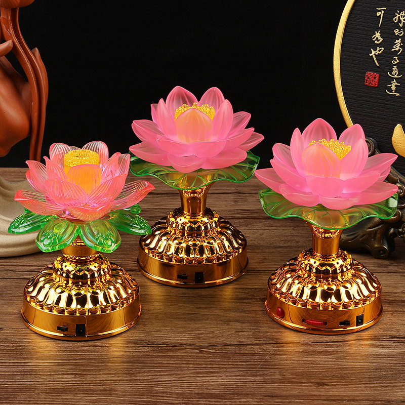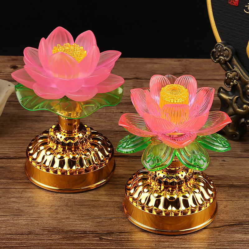 LED莲花灯七彩变色荷花灯河灯家用摆件新款粉花琉璃充电宝莲插电