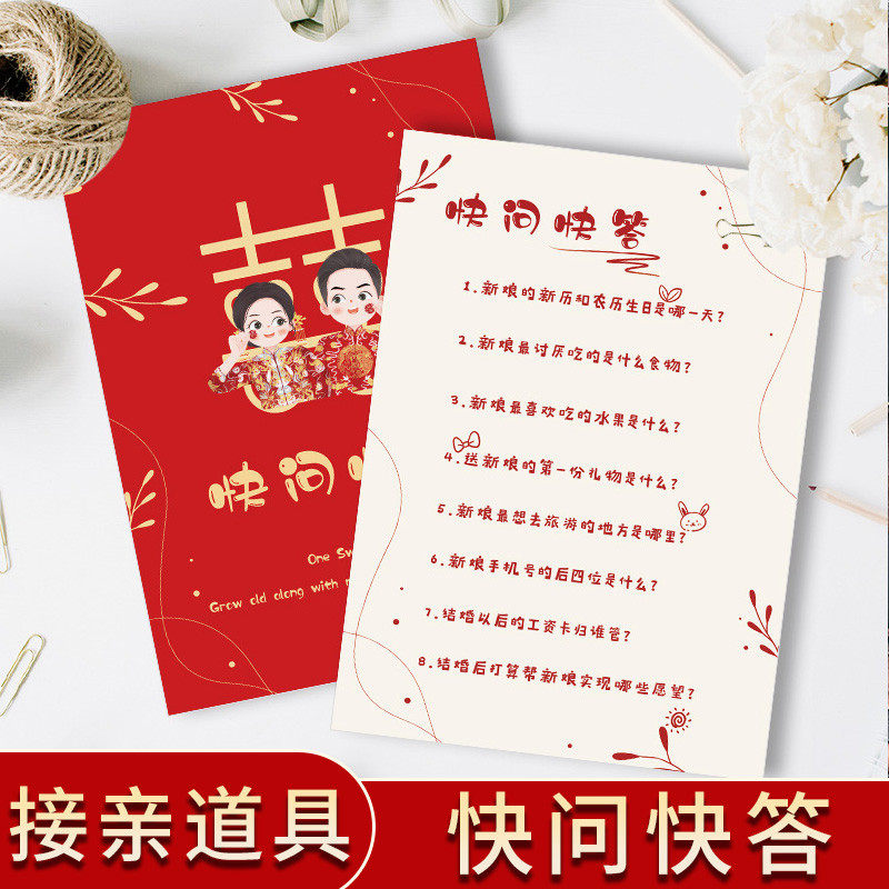 结婚堵门游戏新郎问答卡接亲整蛊快问快答道具搞笑文明婚庆用品