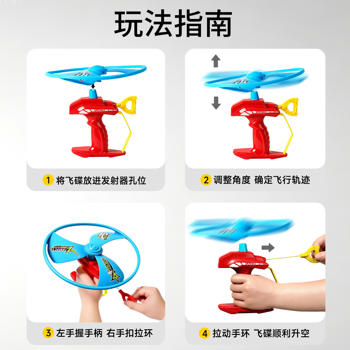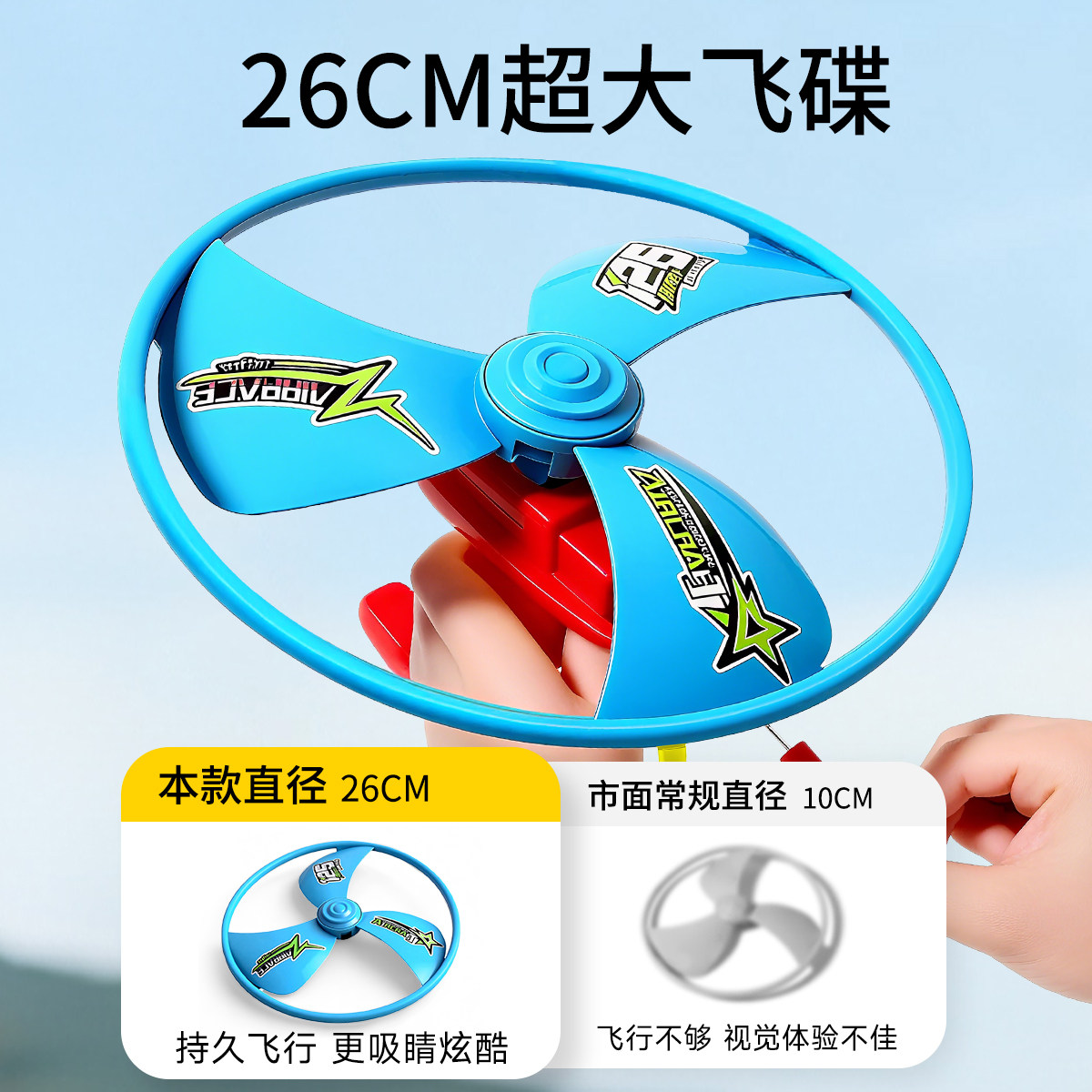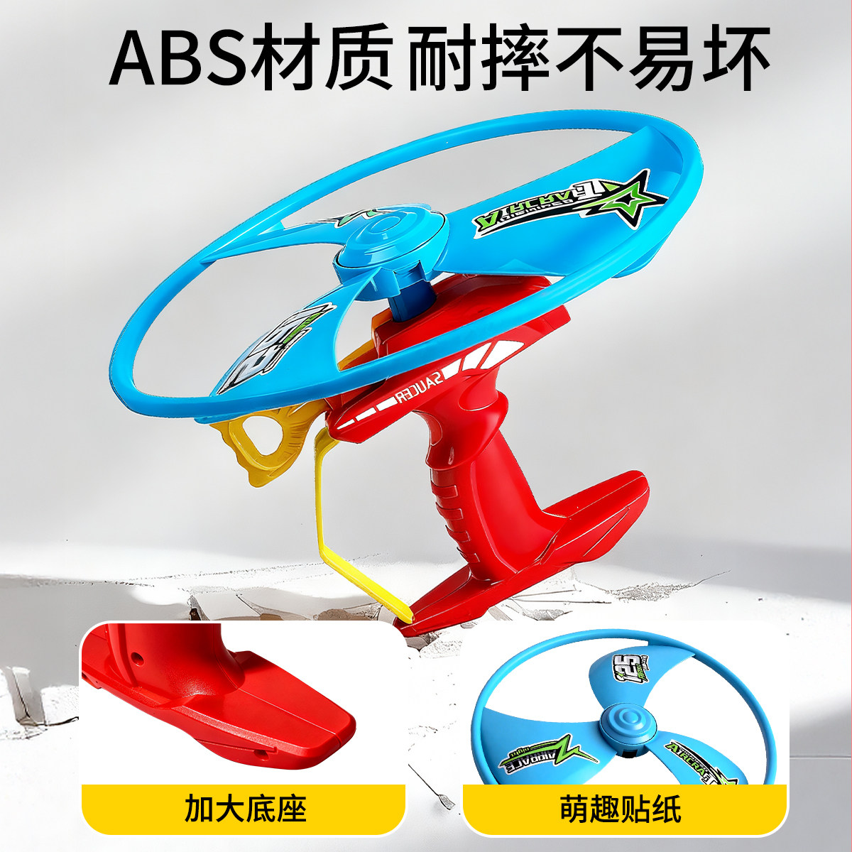 手拉飞盘飞天竹蜻蜓拉线旋转发射飞碟男孩女亲子互动儿童户外玩具