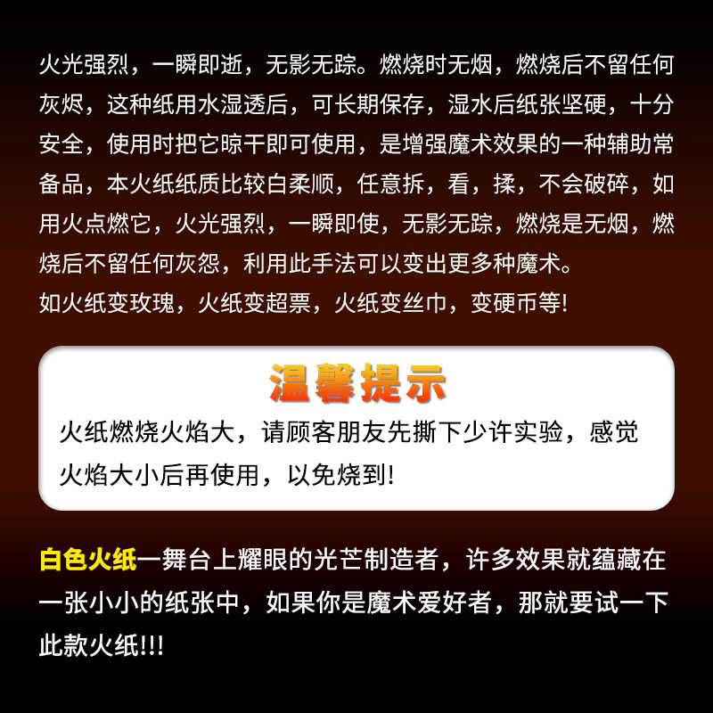 推荐理由:火纸魔术玫瑰闪光火焰纸快速燃婚礼求婚表白餐厅魔术道具无灰烬