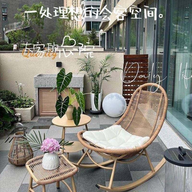 欧式风摇椅躺椅大人阳台家用AJH休闲藤古藤编懒人椅户复外庭院摇