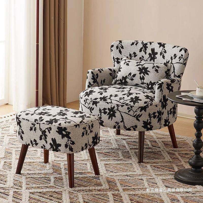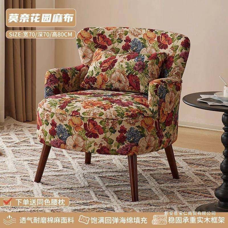 卧美式复花古单人沙发椅小户型发客厅74阳台休闲椅室布沙懒人老虎