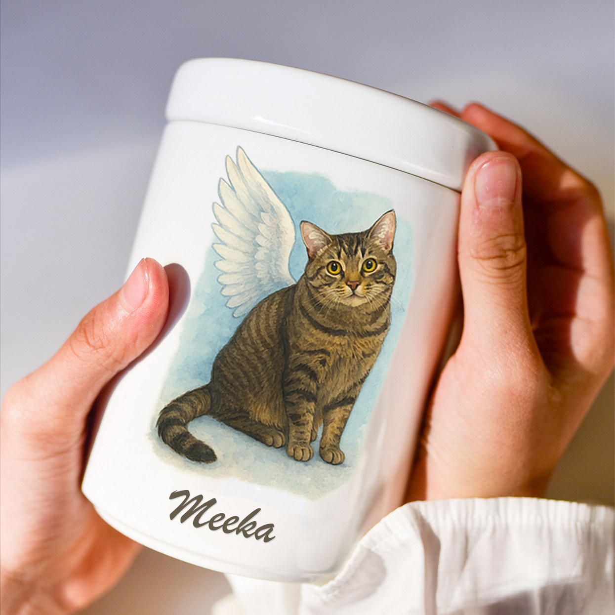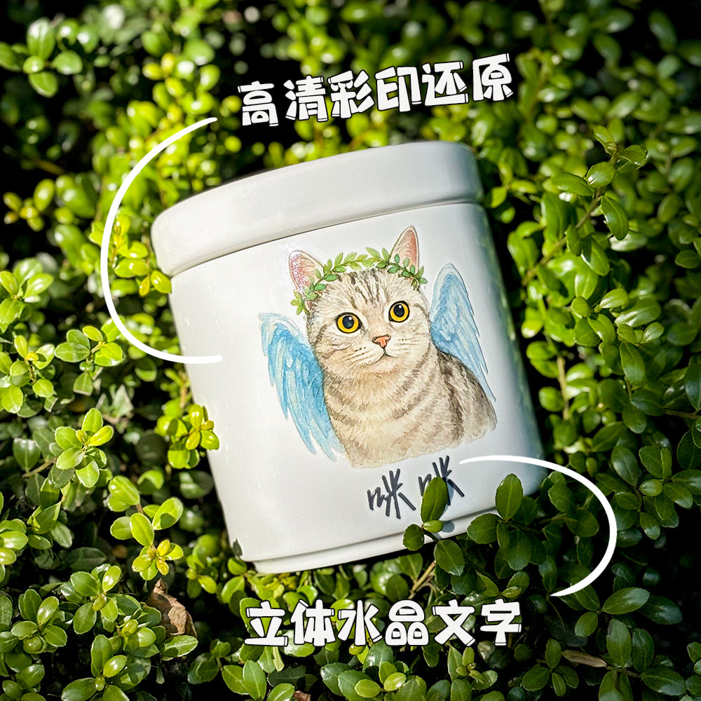 推荐理由:来图定制宠物纪念罐火化猫狗骨灰盒陶瓷殡葬用品实木照片相框棺材
