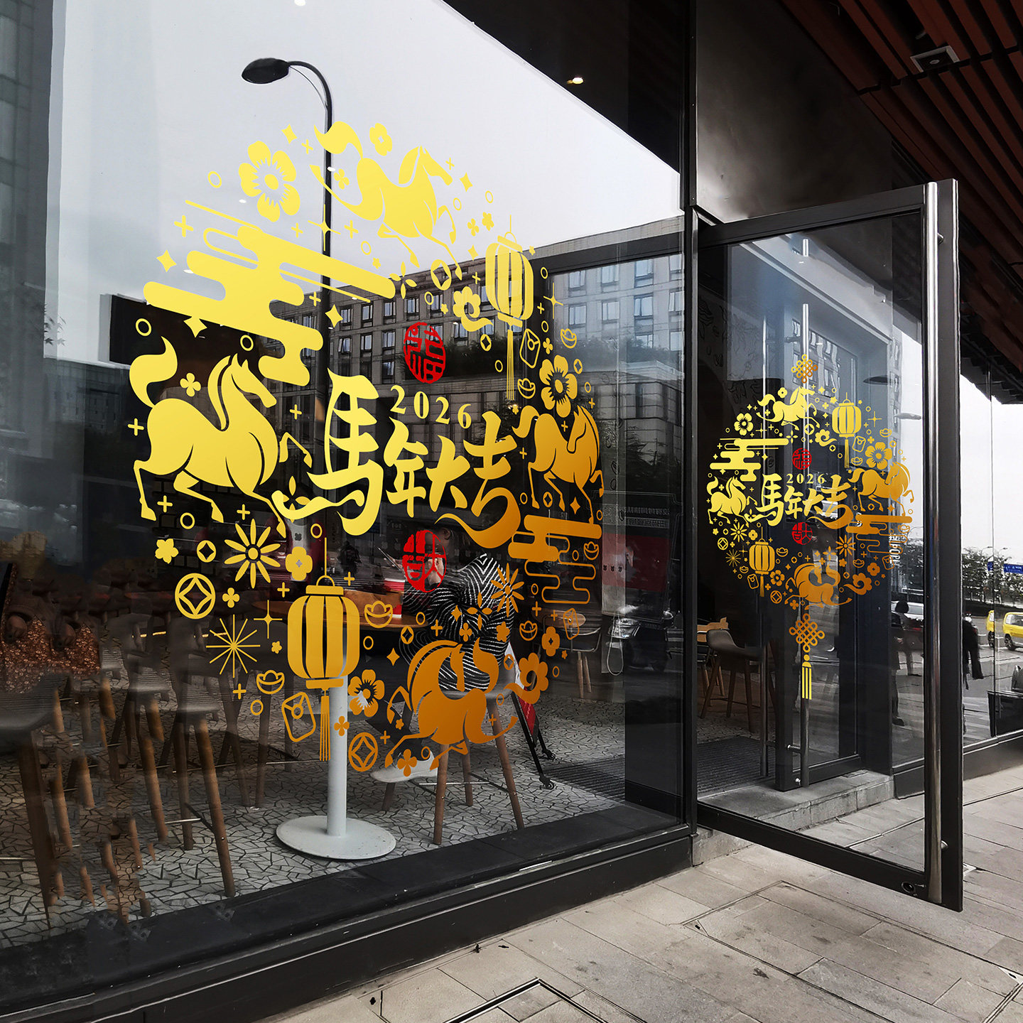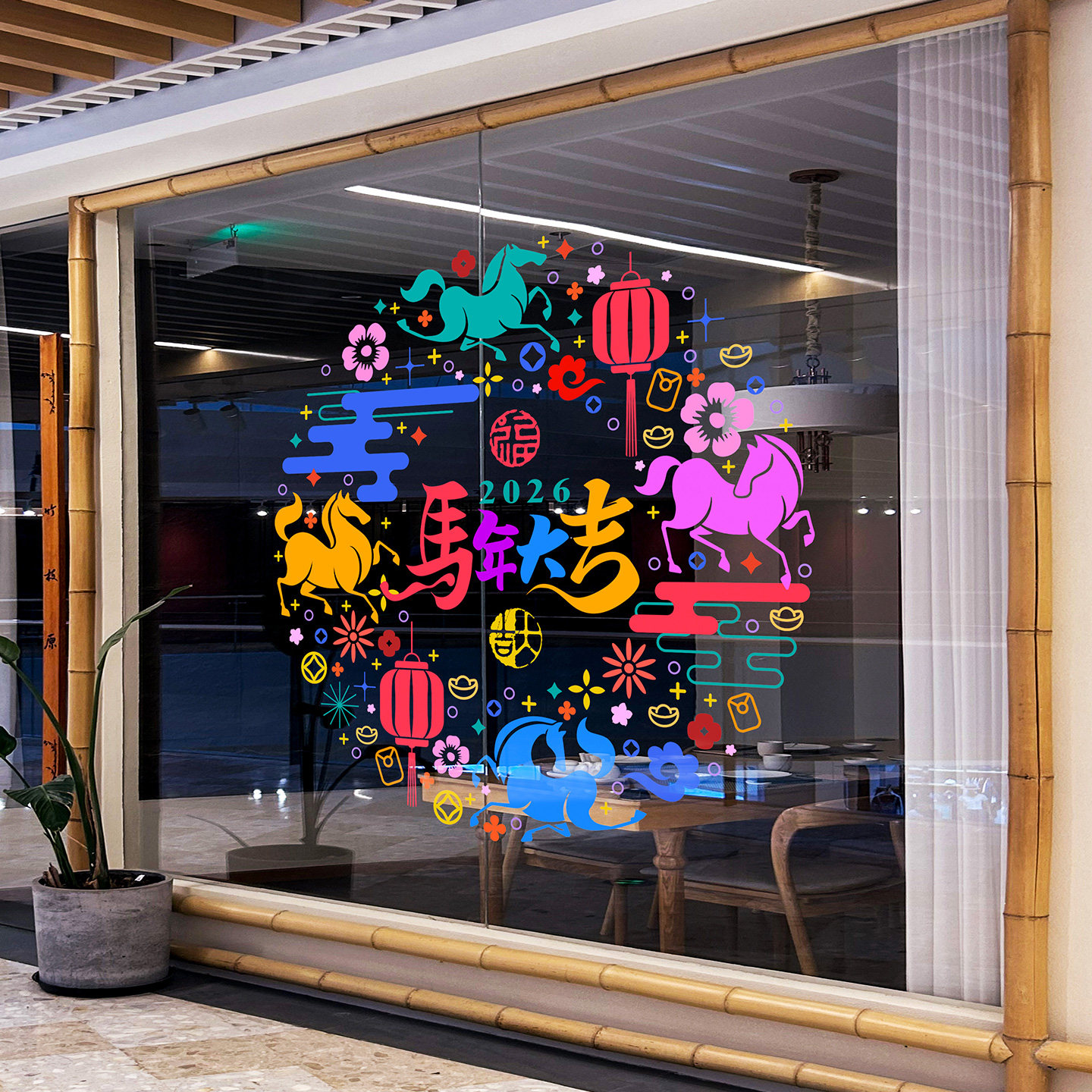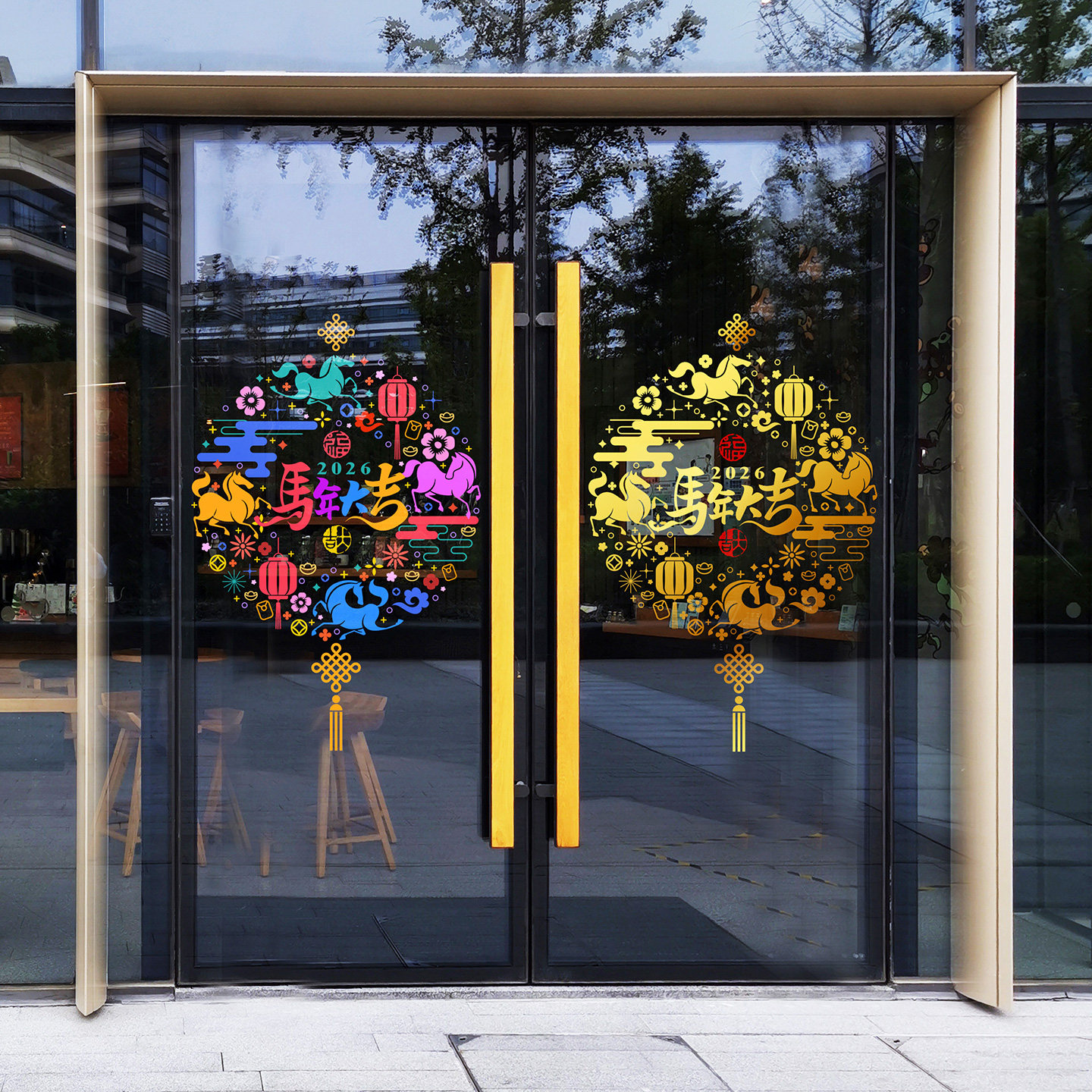 马年大吉剪纸窗花彩色镂空高级感中国结门贴春节创意海报门店装饰