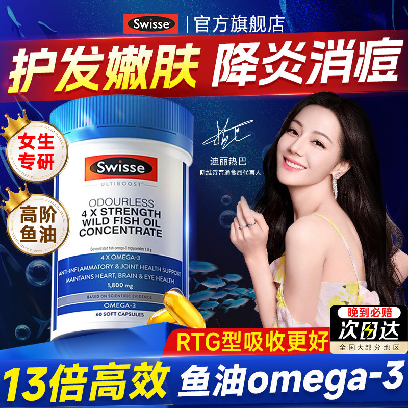 鱼油女生omega3成人Swisse高浓度祛痘女士护发抗养肤深海官方正炎