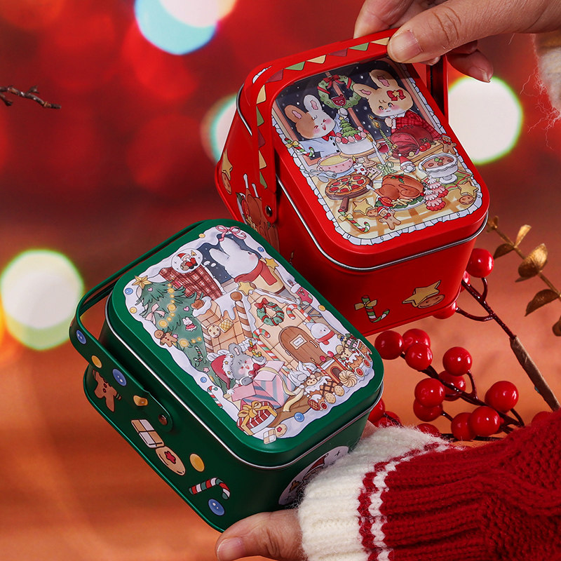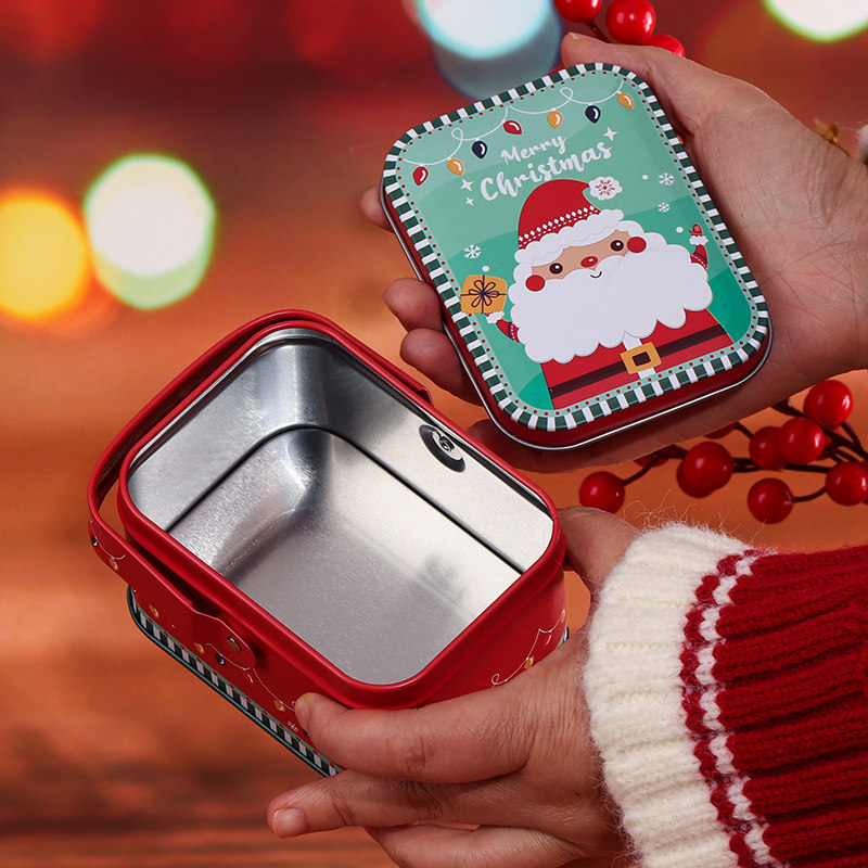 圣诞马口铁盒糖果手提盒圣诞老人派对小朋友手挽盒新年节日礼物盒