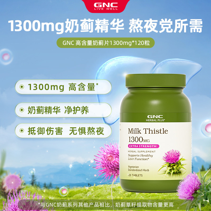 健安喜gnc护肝片水飞蓟奶蓟草精华片1300mg120粒迷你熬夜醒酒解酒