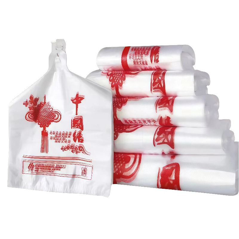 中国结塑料袋加厚外卖食品袋打包袋一次性方便袋购物袋背心手提袋