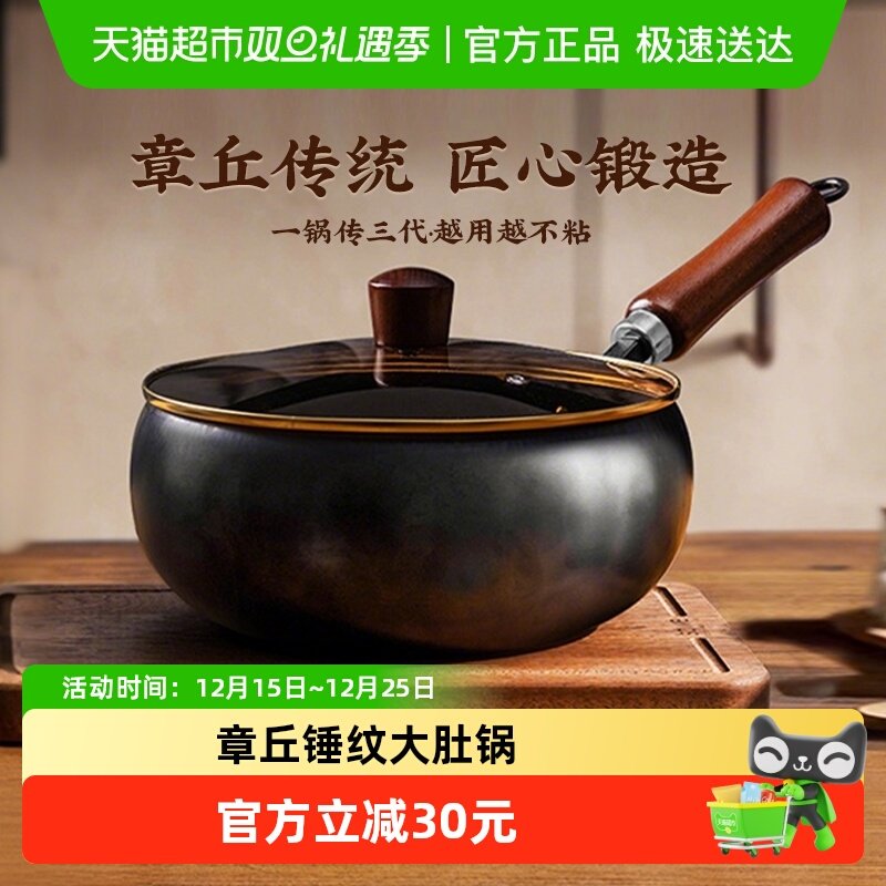 芭蒂维拉章丘大肚锅锤纹铁锅旗舰正品家用炒菜锅无涂层不粘锅炒锅