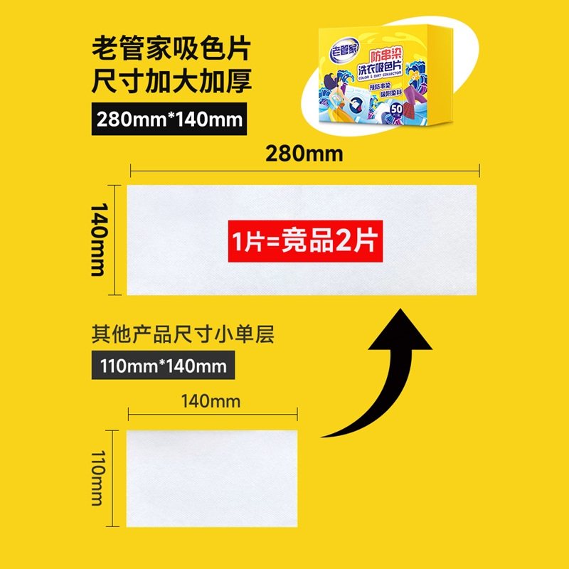 老管家吸色片50片衣物混洗防串色染色洗衣纸色母片洗衣机固色护色