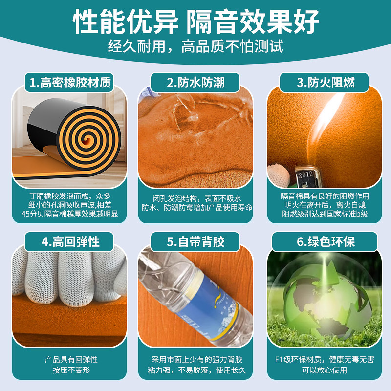 推荐理由:超强隔音棉墙体吸音棉消音高密自粘隔音墙贴卧室隔音板海绵防火