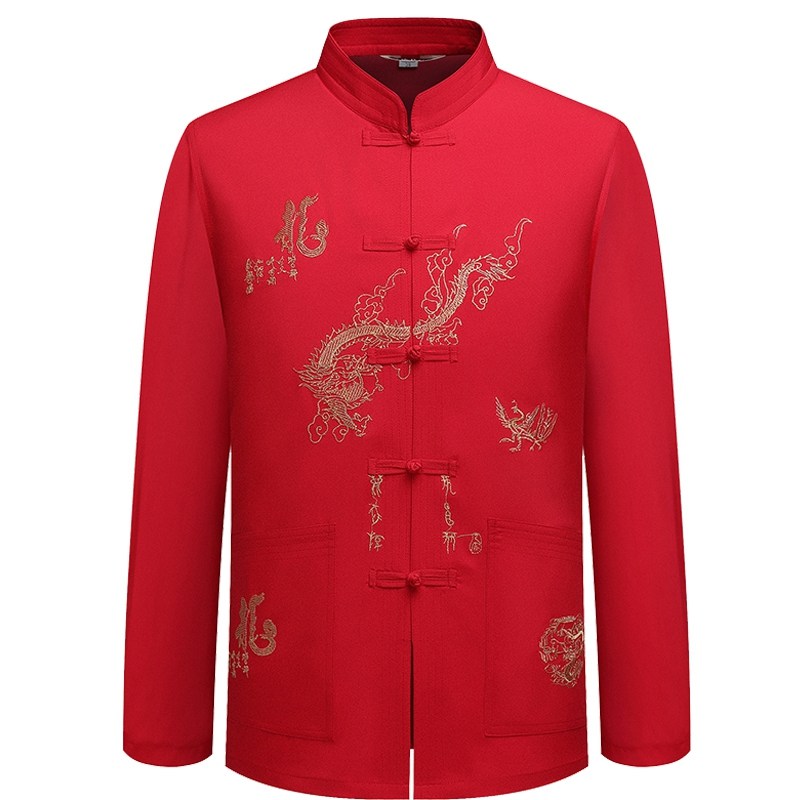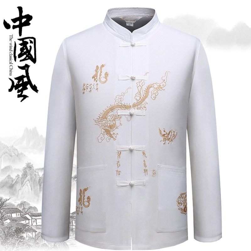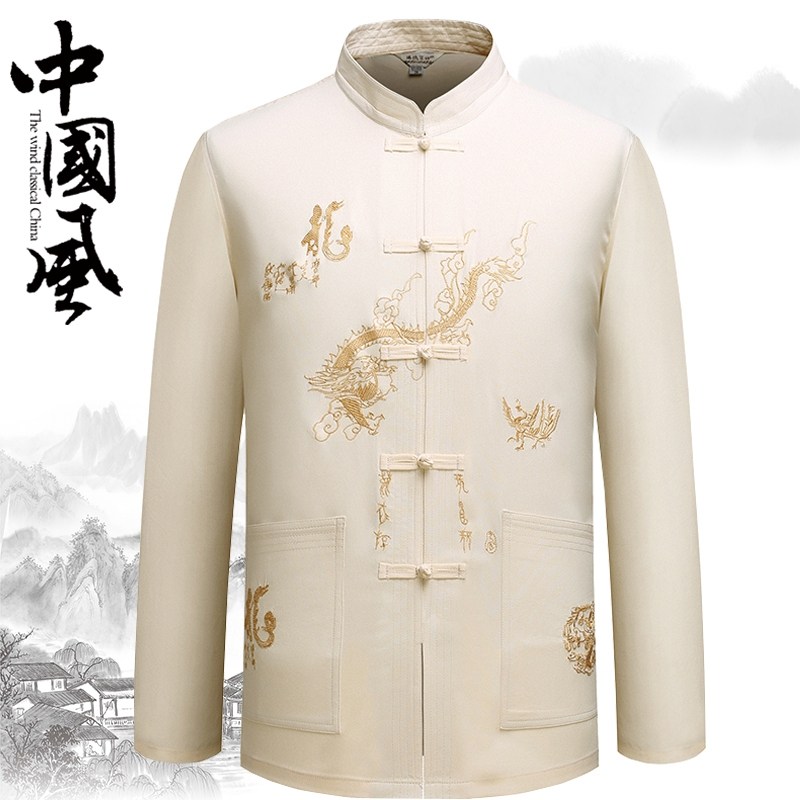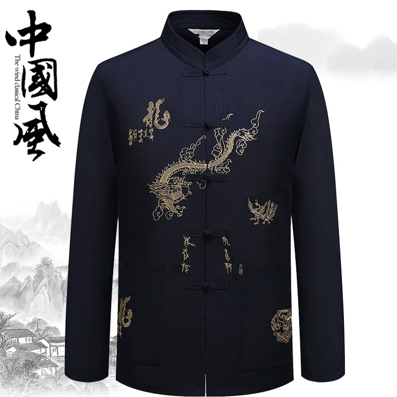 推荐理由:中老年人春秋夏装爷爷唐装男长袖衬衫中式立领刺绣爸爸晨练服汉服