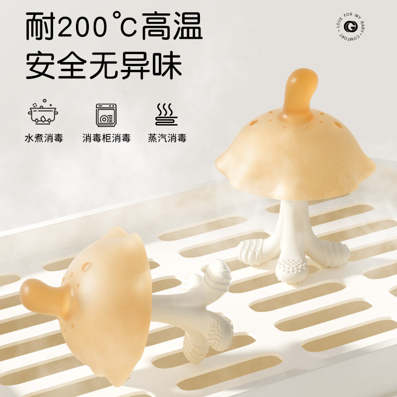 贝因美小月龄牙胶婴儿磨牙棒蘑菇安抚宝宝防吃手口欲期婴幼儿咬胶