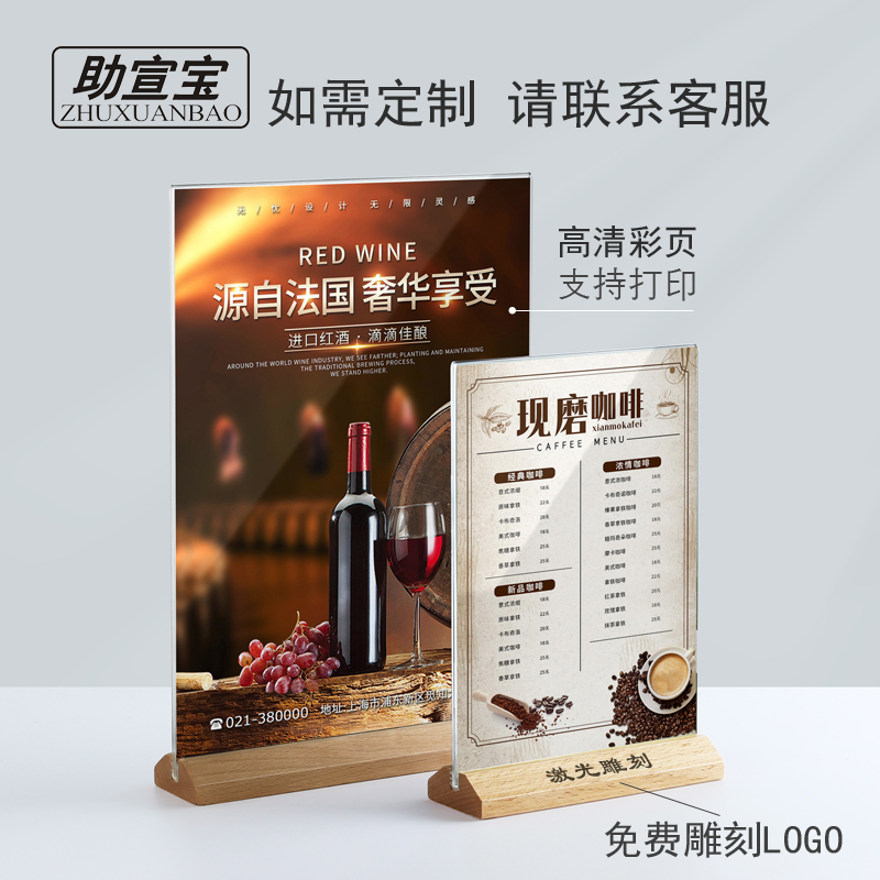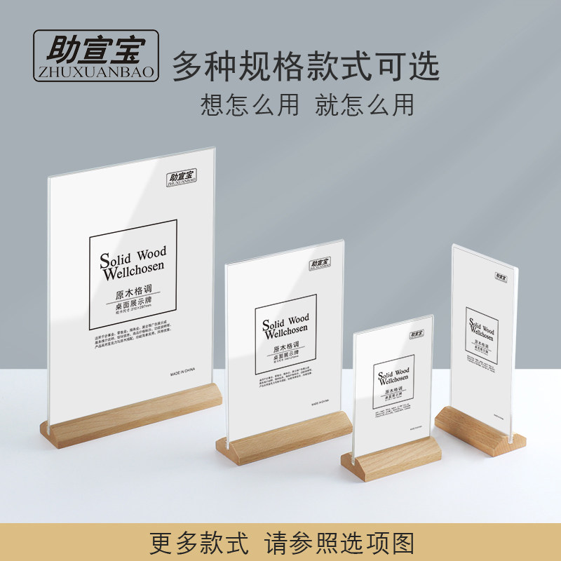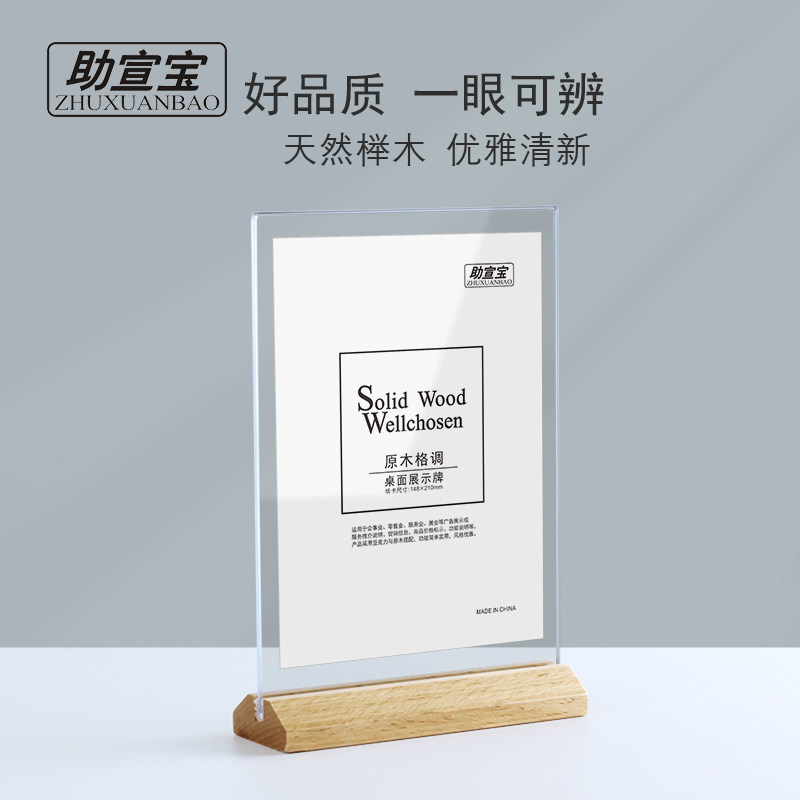 助宣宝榉木亚克力台卡架A4桌牌台签台牌立牌价格标价牌餐牌展示牌