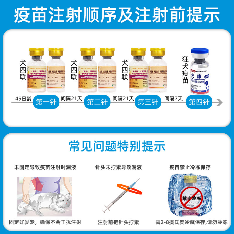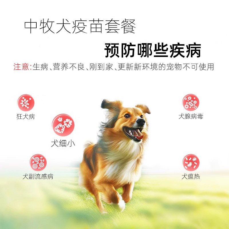 推荐理由:中牧幼犬四联疫苗全套犬细小狗狗疫苗四联预防针科前幼犬疫苗套餐