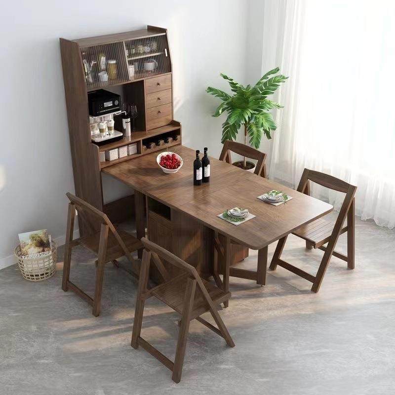 餐桌餐边柜一桌四椅组合一体多功能可折叠伸缩家用小户型实木桌子