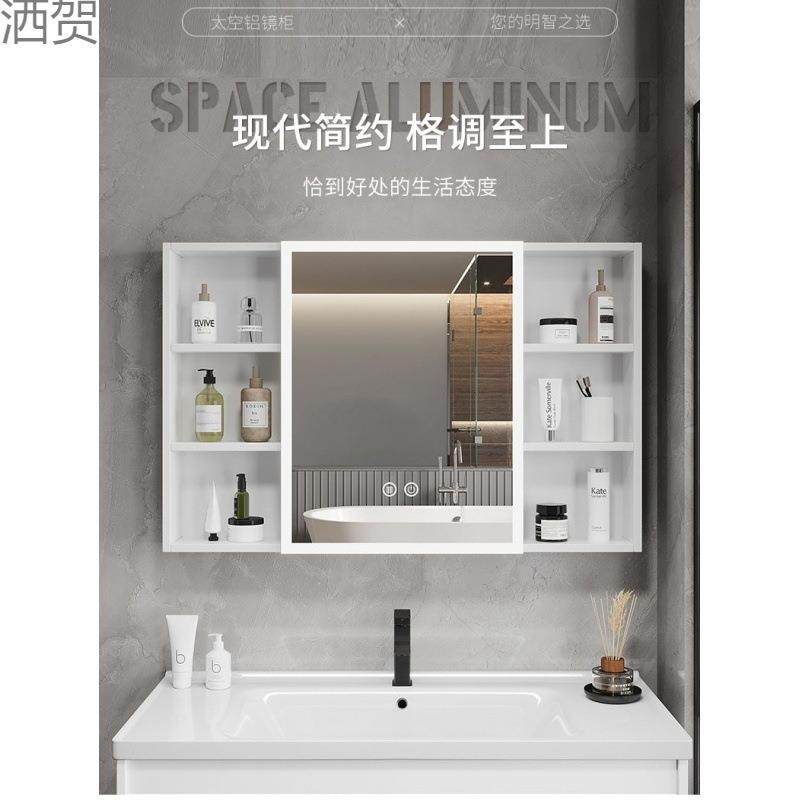 加厚太空铝智能浴室镜柜美妆收纳架卫生间挂墙式梳妆镜子灯光除雾
