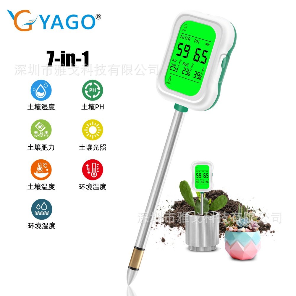 数显7合1土壤检测仪 PH计/光照/肥力温湿度计环境园艺土壤检测仪