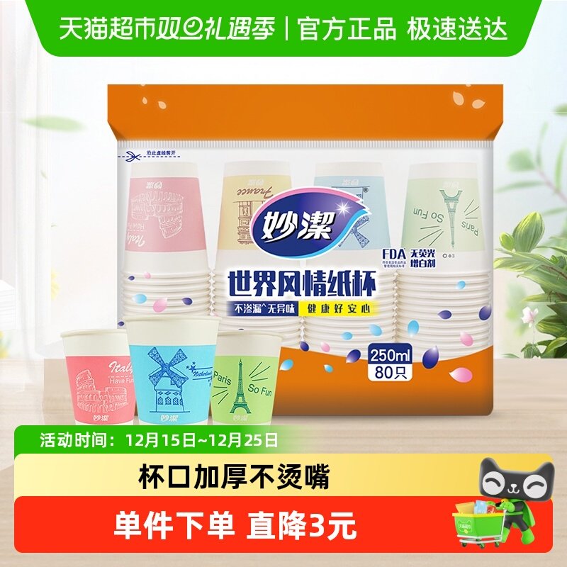 妙洁一次性杯子茶水杯野餐露营纸杯大号装不易渗漏无异味
