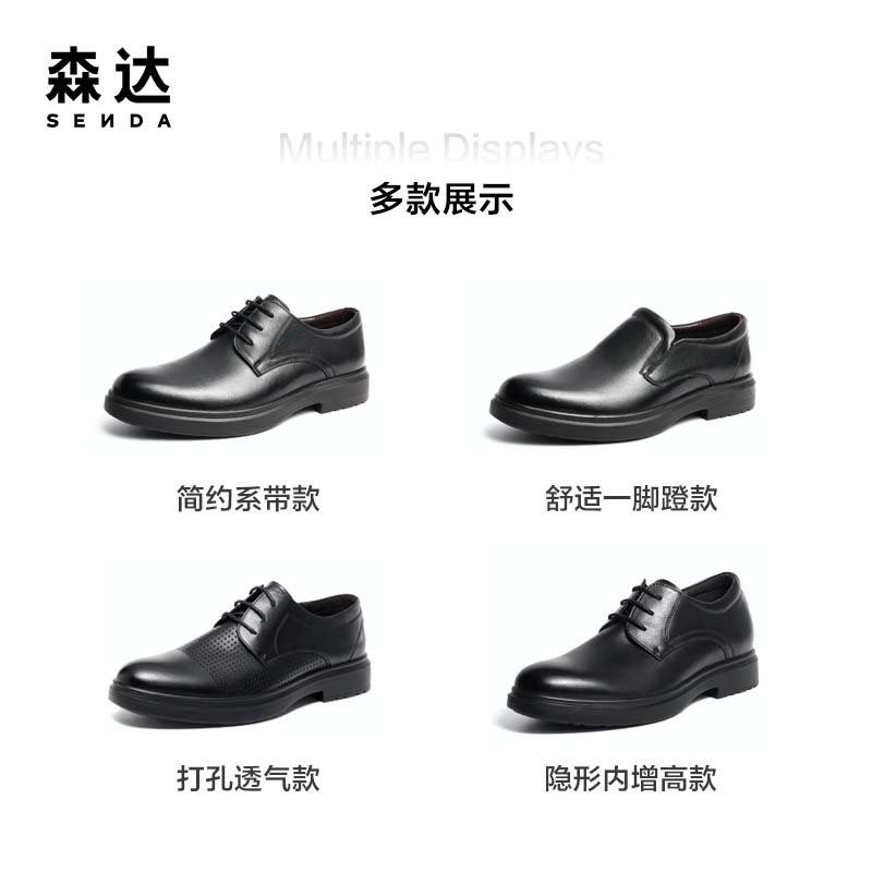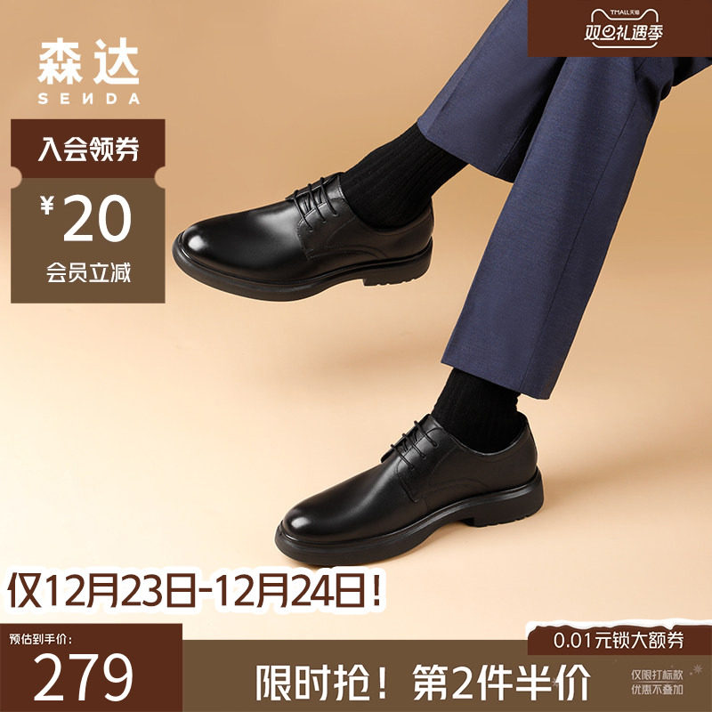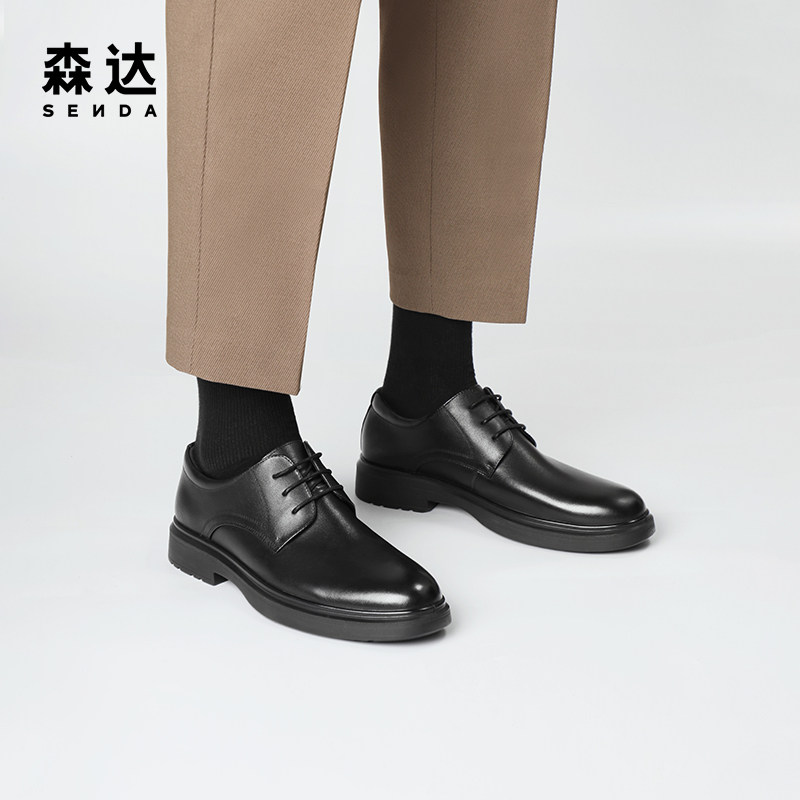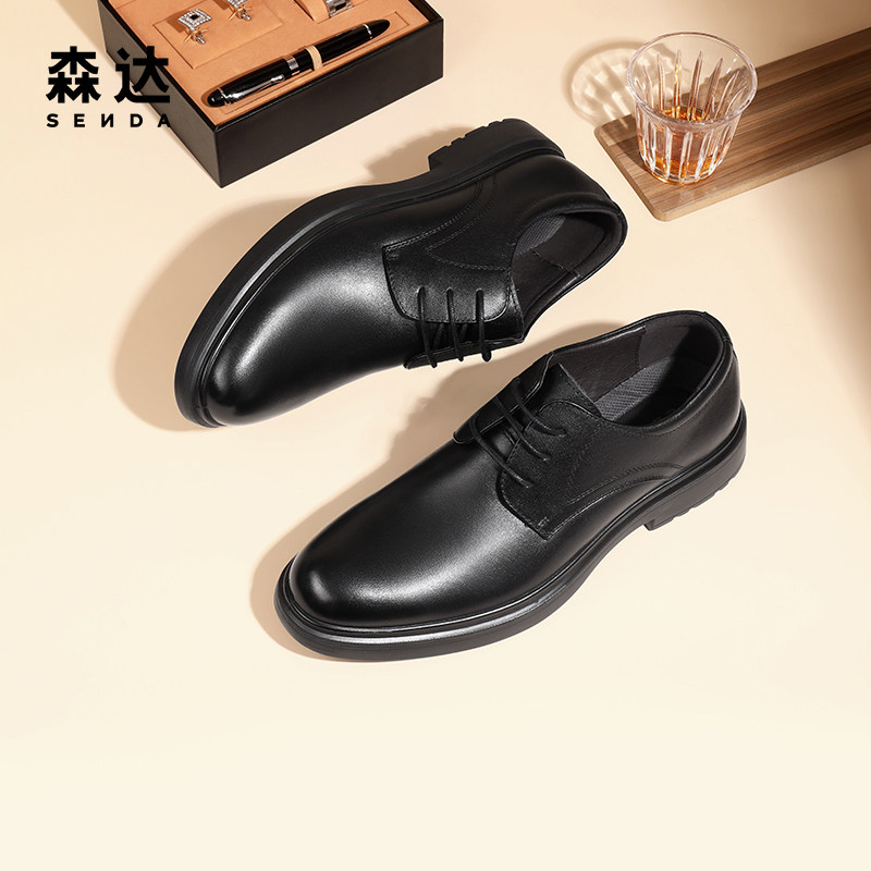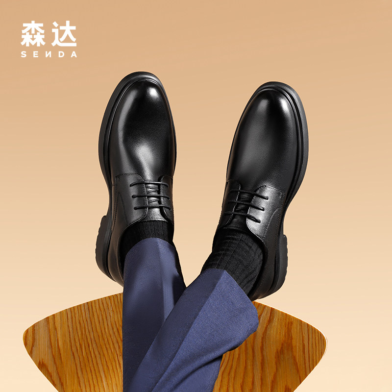 森达男鞋正装皮鞋布洛克雕花商务通勤德比鞋商场同款真皮增高婚鞋
