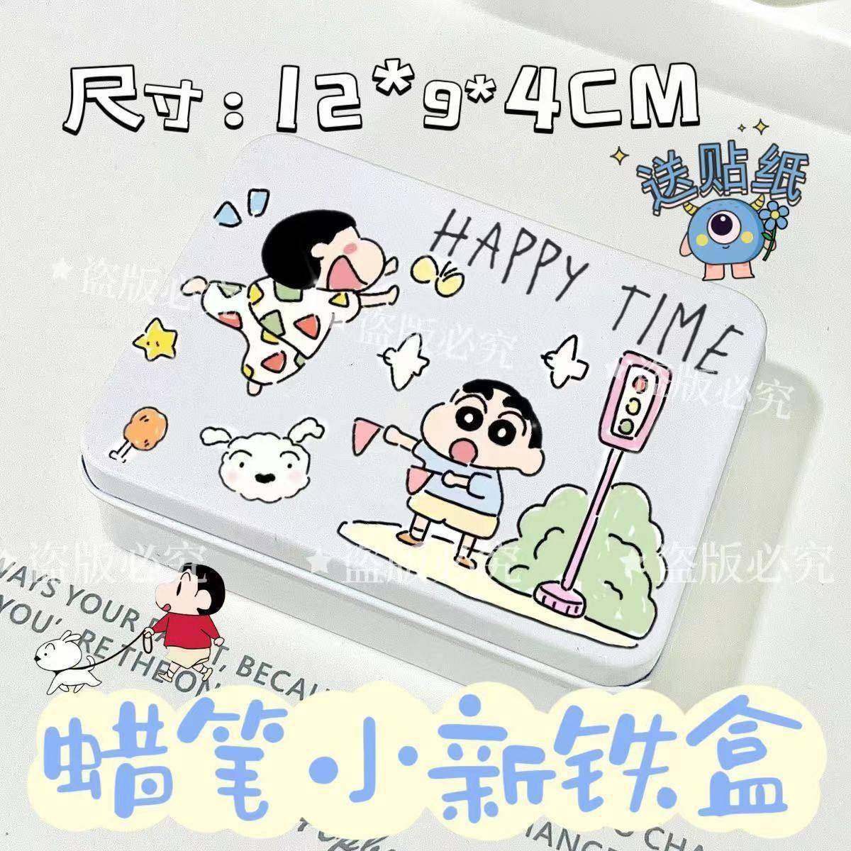 新款蜡笔小新铁盒收纳日系高颜值ins风桌面小卡咕手账素材整理盒