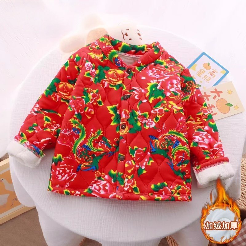 儿童花棉袄加绒棉服外套冬民族风男童女童东北大花潮流炸街亲子装