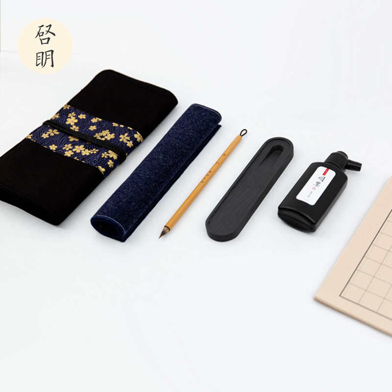 启明文房随行文房小楷六件套布艺笔墨纸砚毛毡镇尺收纳袋便携套装