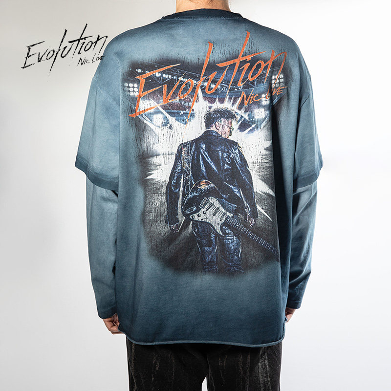 【演唱会周边】假两件印花长袖T恤 蓝色