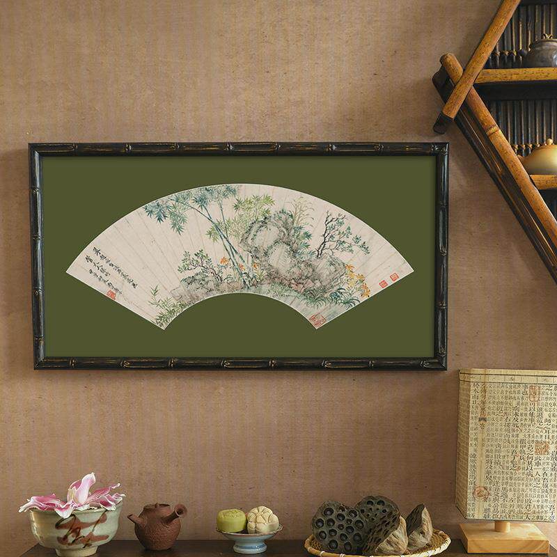 扇形 国风中式美术馆质感复古法式装饰挂画中古风山水风景装饰画