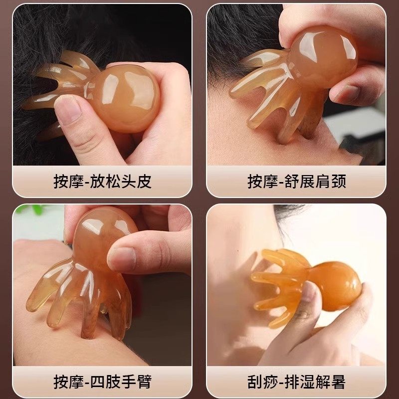 章鱼按摩梳头部经络按摩器头皮穴位头疗梳八爪鱼便携大宽齿刮痧梳