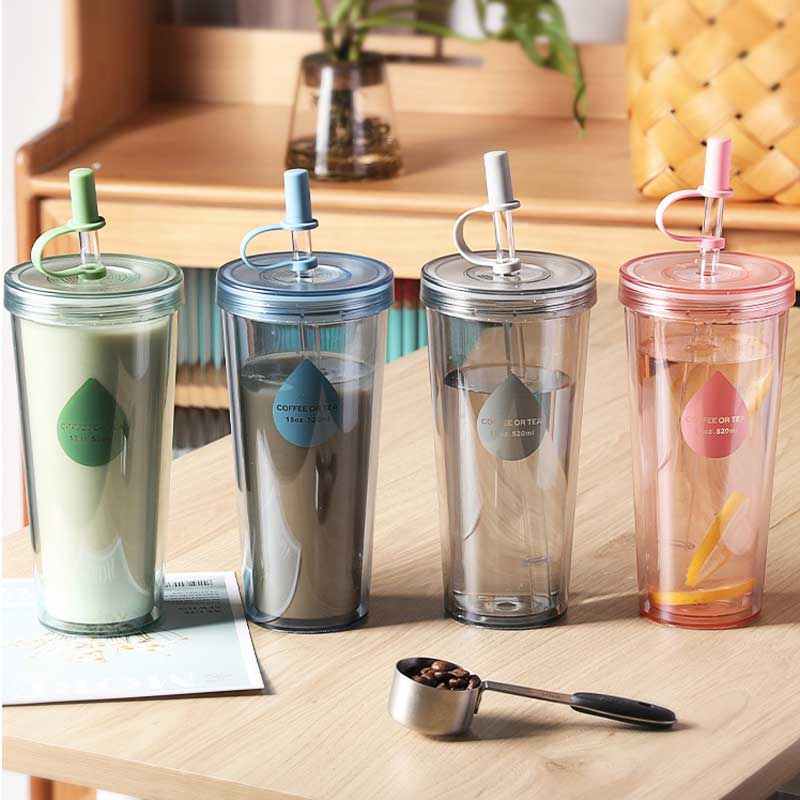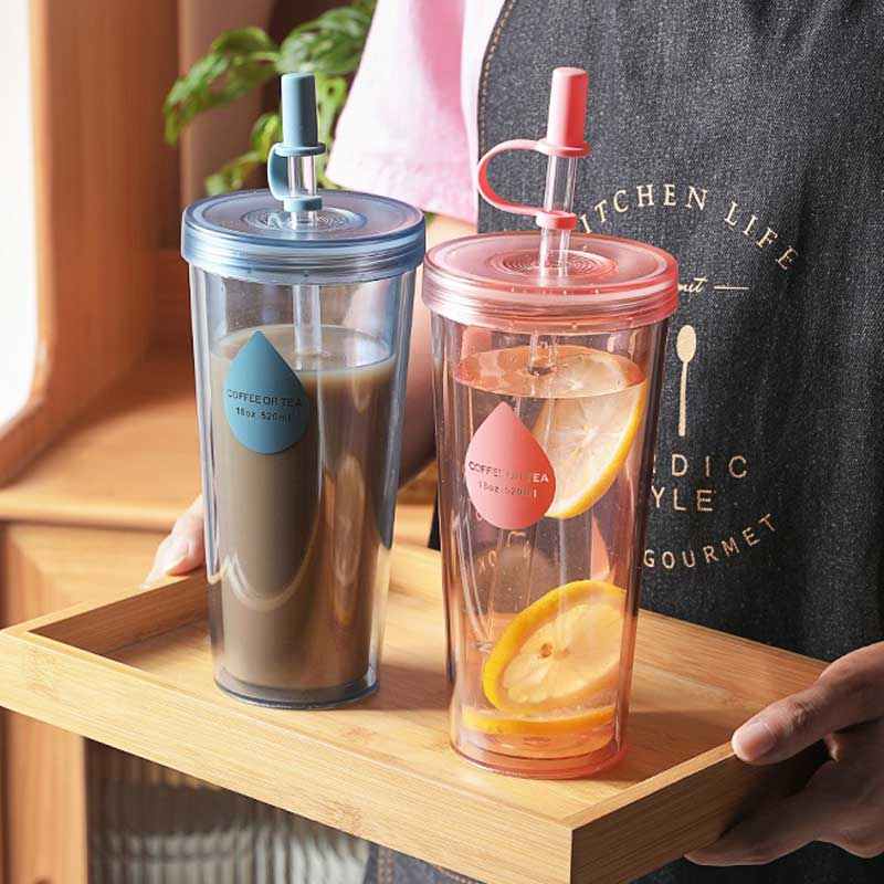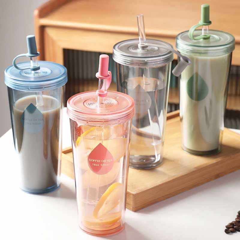 推荐理由:双层塑料吸管杯可循环使用大容量透明水杯奶茶杯子随行咖啡杯水樽
